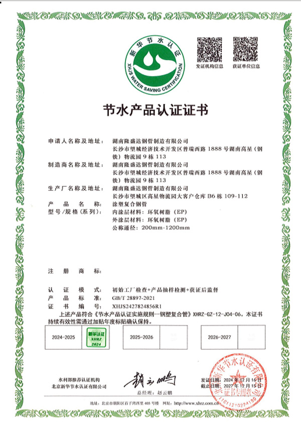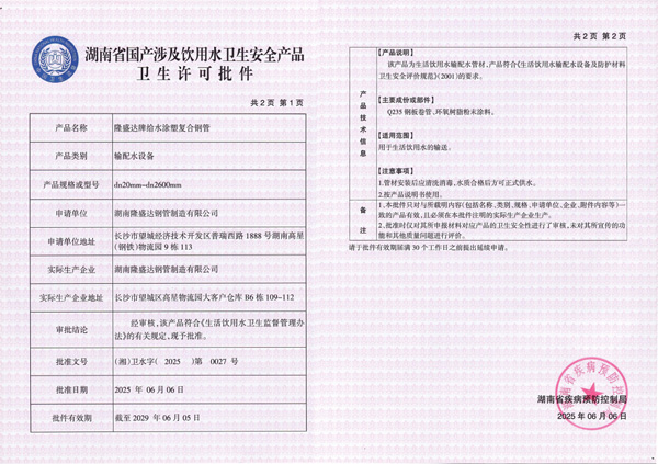 隆盛達牌給水涂塑復合鋼管管材&管件涉水批件