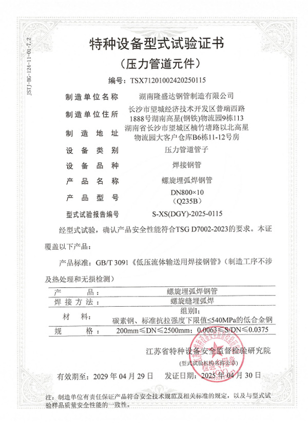 湖南螺旋管生產(chǎn)資質(zhì),湖南鋼管廠家認證,API5L特種設備許可,ISO9001鋼管企業(yè)